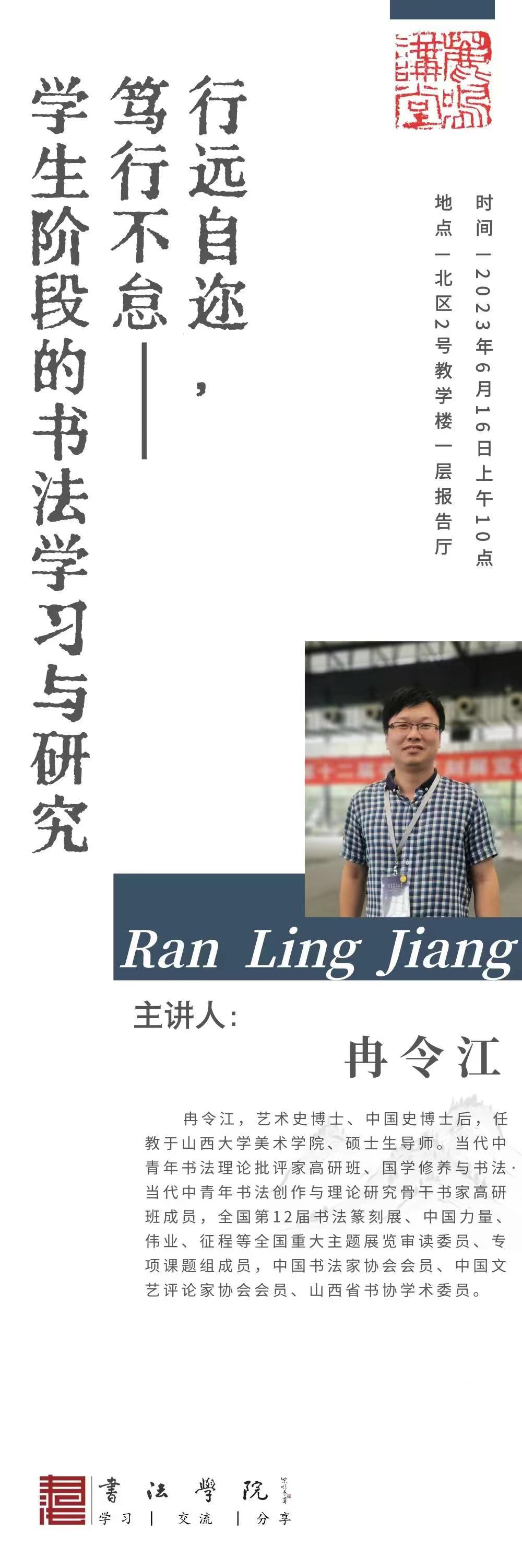 【讲座预告】冉令江:行远自迩,笃行不怠——员工阶段的书法学习与研究