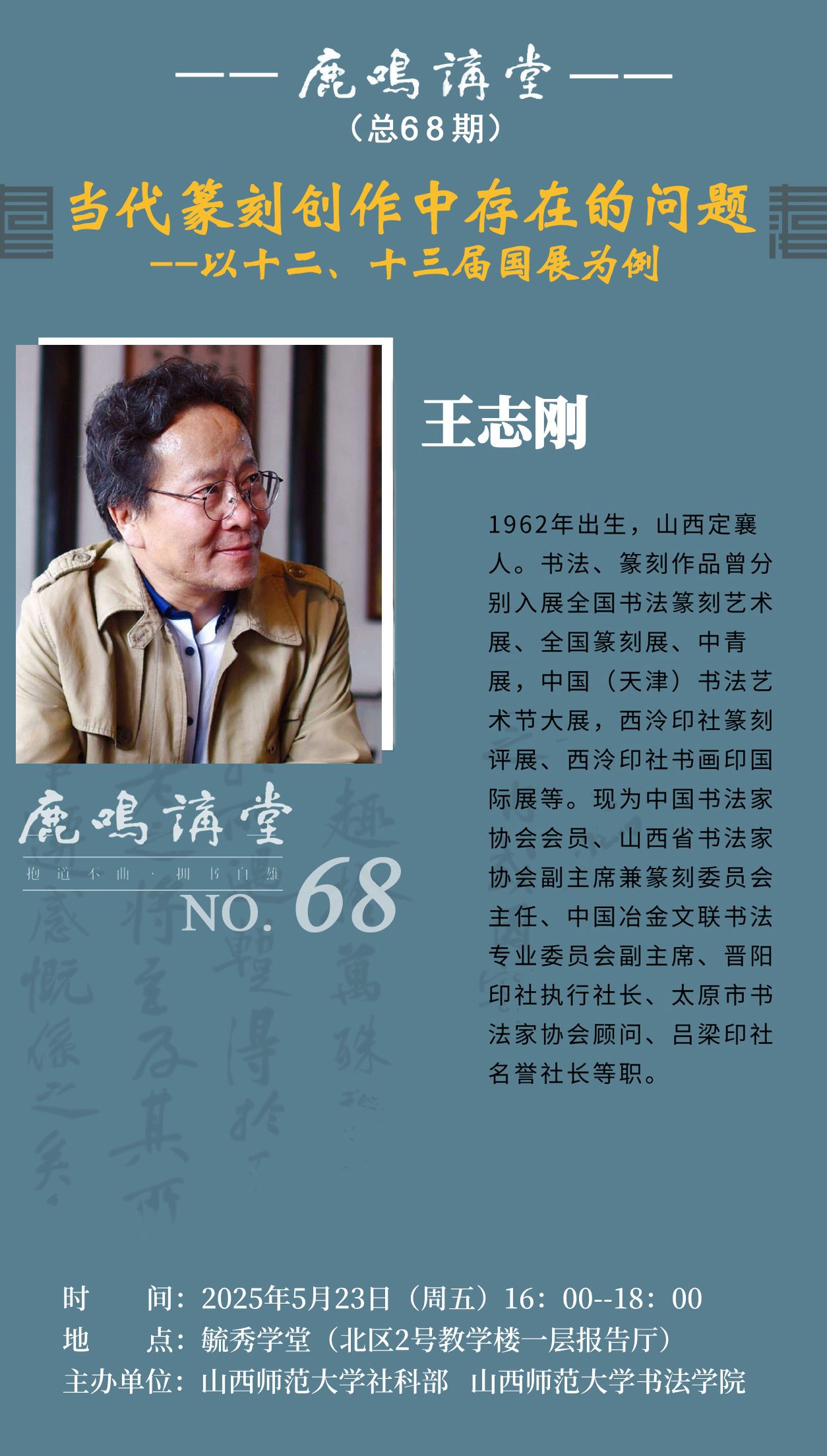 【讲座预告】王志刚:当代篆刻创作中存在的问题——以十二、十三届国展为例