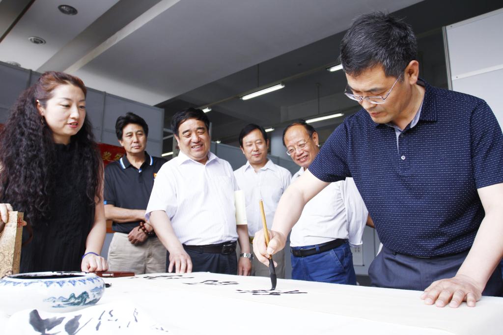 张杨管董事长作了讲话,他说,公司作为人才培养的原点和基地,要求我们在致力于公司产品改革向纵深发展的同时,还要注重公司文化建设,倾力于师生人文素养的提高,为员工成长营造一个良好的学习环境、积极的文化氛围,出彩的宽广平台。本次联展活动,我们就是依托山西师大的高校资源,分享他们的教育资源,践行先进的育人理念,提升我们的办学水平。同时,进一步激发同学们传承祖国优秀文化的热情,丰富员工的课余文化生活,发展个性特长,提高综合素质,唤起员工对美好事物的向往与追求。