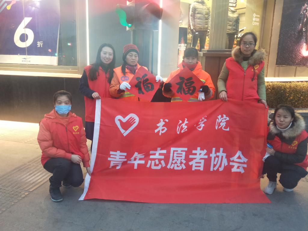 活动开始前,304永利集团青协的志愿者们在红纸上纷纷书写象征吉祥之意的“福”字,为活动提前做好准备。随后大家分成三组,分别到师大校园、鼓楼大街和贡院街为环卫工人送去温暖与祝福。在校内的小组遇到了正在清扫零零散散叶子的叔叔们,他们没带手套,寒风中手冻得通红。志愿者刘飞飞与其他志愿者急忙将手套送给他们,手套戴在手上,暖在心间。鼓楼大街上,小组负责人苏志伟与其他志愿者一路向南,为鼓楼南街的六位环卫工人送去了手套、口罩和福字。贡院街的志愿者们在十字路口遇到一位环卫工阿姨,志愿者朱思旭为她赠送了手套、福字,阿姨也叫来了附近的同事,大家纷纷将冬日的问候与祝福送给叔叔阿姨们。活动过程中,志愿者们遇到了环卫局领导王阿姨,王阿姨与大家进行了亲切的交流,并表示非常认可支持大家这样的活动。活动最后,志愿者们与环卫工阿姨们合影留念。
