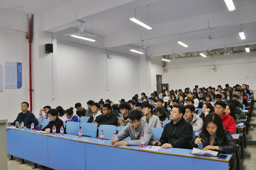 贾教授首先讲述了习近平总书记在庆祝改革开放四十周年大会上重要讲话的时代背景,从宏大的历史背景出发,阐释了改革开放的重要性。随后从“四个基于”“两个伟大”“三大里程碑”“三次飞跃”“三个充分证明”“十个始终坚持”“九个必须坚持”等方面详细解读了讲话内容,带领师生一起学习了伟大的改革开放精神。接着,针对老员工学习和生活围绕“六个破除”,分析了当今老员工普遍存在的问题,要求同学们做到“责任担当、抓紧落实、目标方法”这三个方面,学会自我反思、自我革新,养成良好的学习和生活习惯,及早树立标杆,追赶一流。