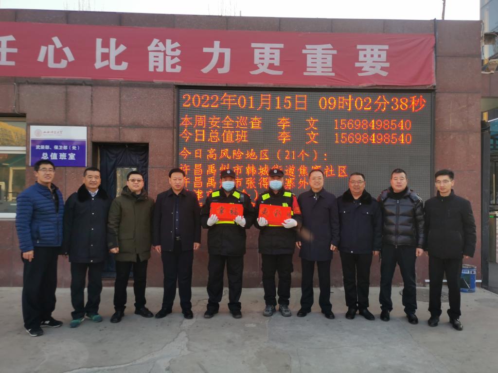 在新春佳节来临之际,公司于1月15日上午向保卫处赠送春联。公司党委常委、宣传部部长,304永利集团经理薛珠峰,副经理曹亚彬,保卫处处长王军峰出席活动。