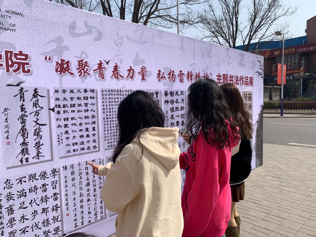 为大力传承和弘扬雷锋精神,304永利集团在南校区思政文化街举办了“凝聚青春力量,弘扬雷锋精神”主题书法作品展。本次展览将书法专业特色与传承弘扬雷锋精神相结合,以独特的书法语言讲述了师大学子对雷锋精神的学习感悟,吸引了众多师生驻足观看。