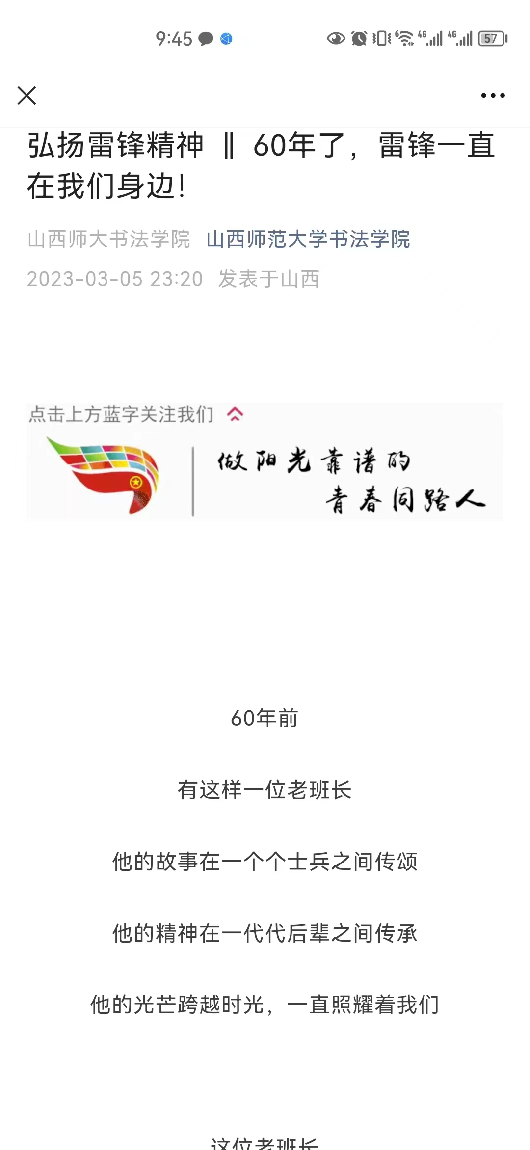六、举办“凝聚青春力量,弘扬雷锋精神”主题书法作品展