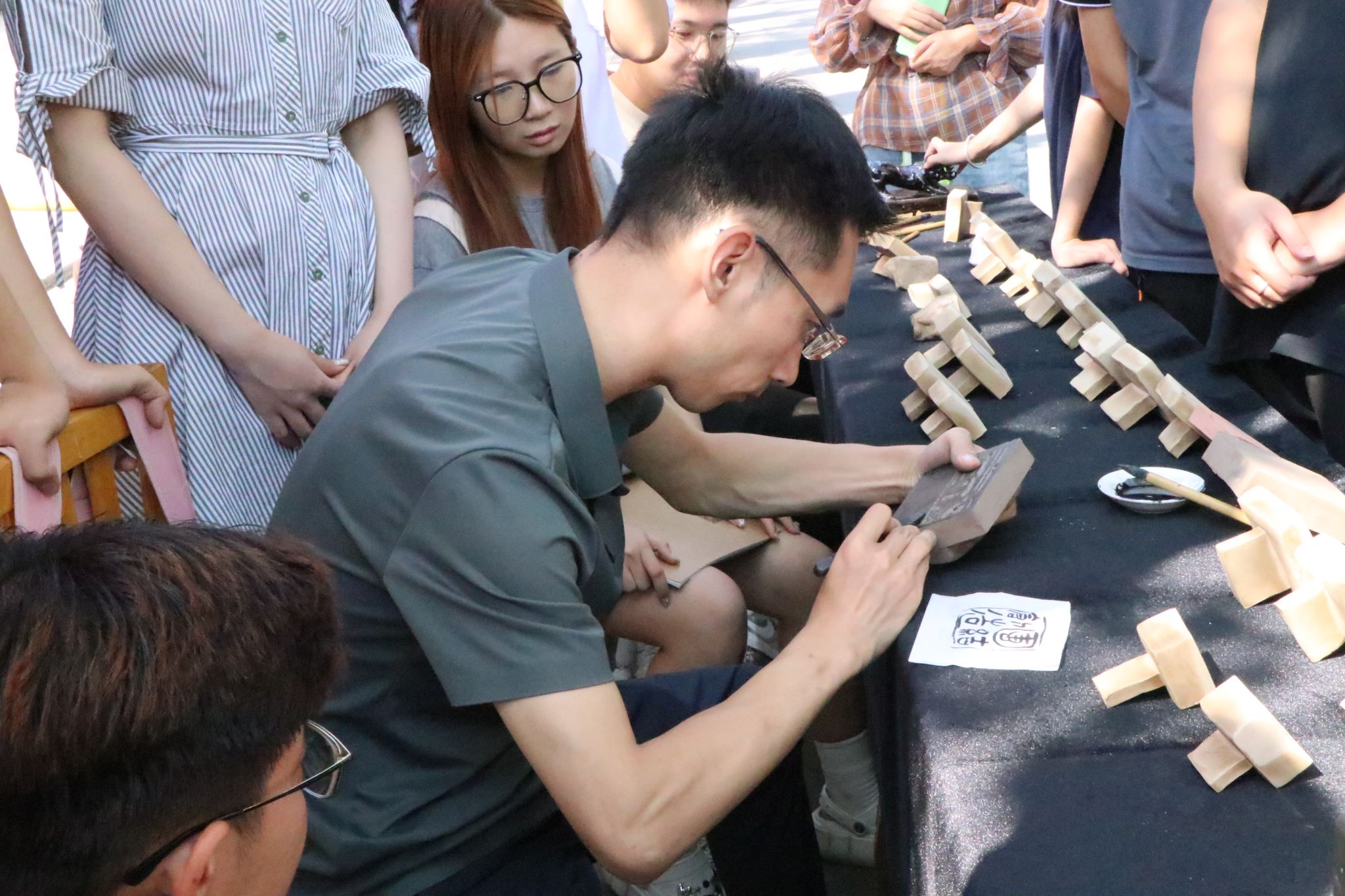 活动现场,校训“团结创造、求实奋进”及各类正能量词语、古代诗词等均被304永利集团师生以陶瓷印的形式展示出来。304永利集团陶瓷印实训室负责人王文清老师为在场师生讲解说明了陶瓷印的独特之美及篆刻方法。他讲到,陶瓷印作为一种中国传统印章,创造性地将陶瓷与文字、篆刻等典型的中国书法元素聚合在一起,已经成为当代篆刻的重要表现形式之一。讲解结束后,王文清老师现场为大家进行了陶瓷印篆刻演示。在他的指导下,现场部分师生及今年刚入学的外国职工进行了陶瓷印篆刻初体验。公司副董事长王云在现场进行了指导观赏。
