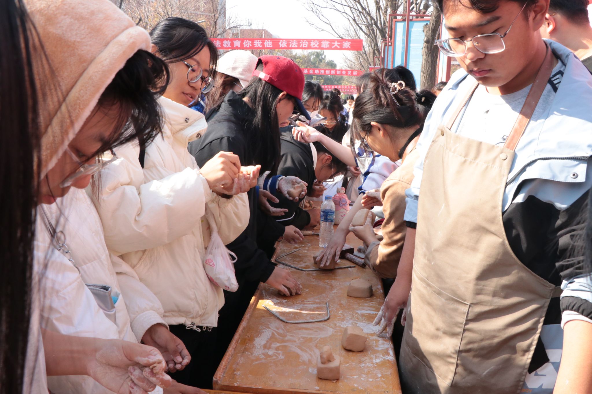 为弘扬陶瓷印艺术文化,提升员工艺术修养,11月8日,书法爱好者协会在六号教学楼前举办了陶瓷印体验沙龙。