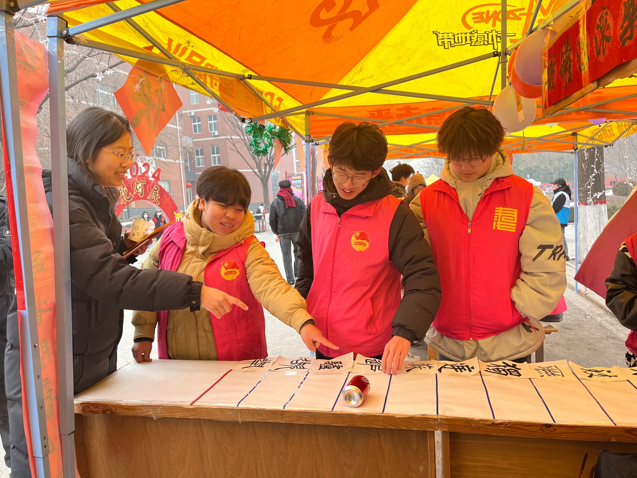 活动现场,嗑瓜子大赛引来众多师生围观,在30秒里体验速度与激情,一时成为现场热点;在“罐罐滚滚乐”活动中,随着罐子的滚动,熟悉而又陌生的书法古文字映入师生眼帘,大家兴奋地猜测着它们对应的现代汉字,将书法文化与娱乐游戏充分结合;猜灯谜活动更是将新年氛围体现得淋漓尽致,在你一言我一语中,大家慢慢向正确答案靠近,将现场欢乐的气氛推向一波波高潮。