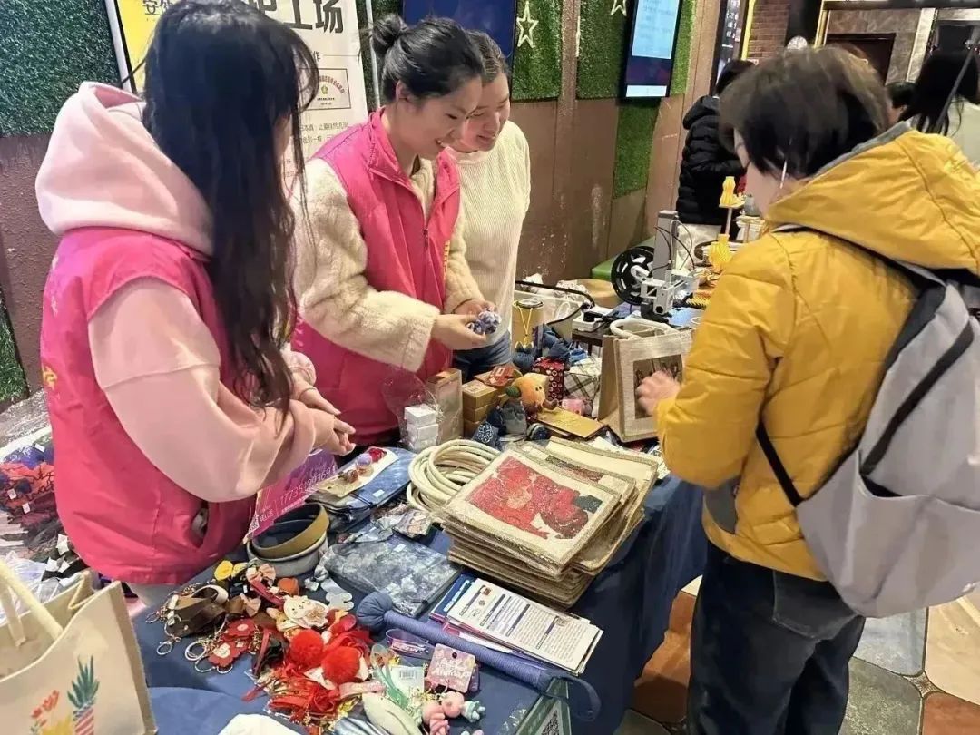 活动期间,志愿者们帮助安健儿公益服务中心的孩子们向爱心人士们仔细介绍孩子们亲手做的扎染丝巾、香包、笔记本、冰箱贴等手工艺品,摊位前人流络绎不绝,大家纷纷用自己的实际行动支持公益事业。看着摊位上的物品不断变少,孩子们的脸上露出了开心的笑容。