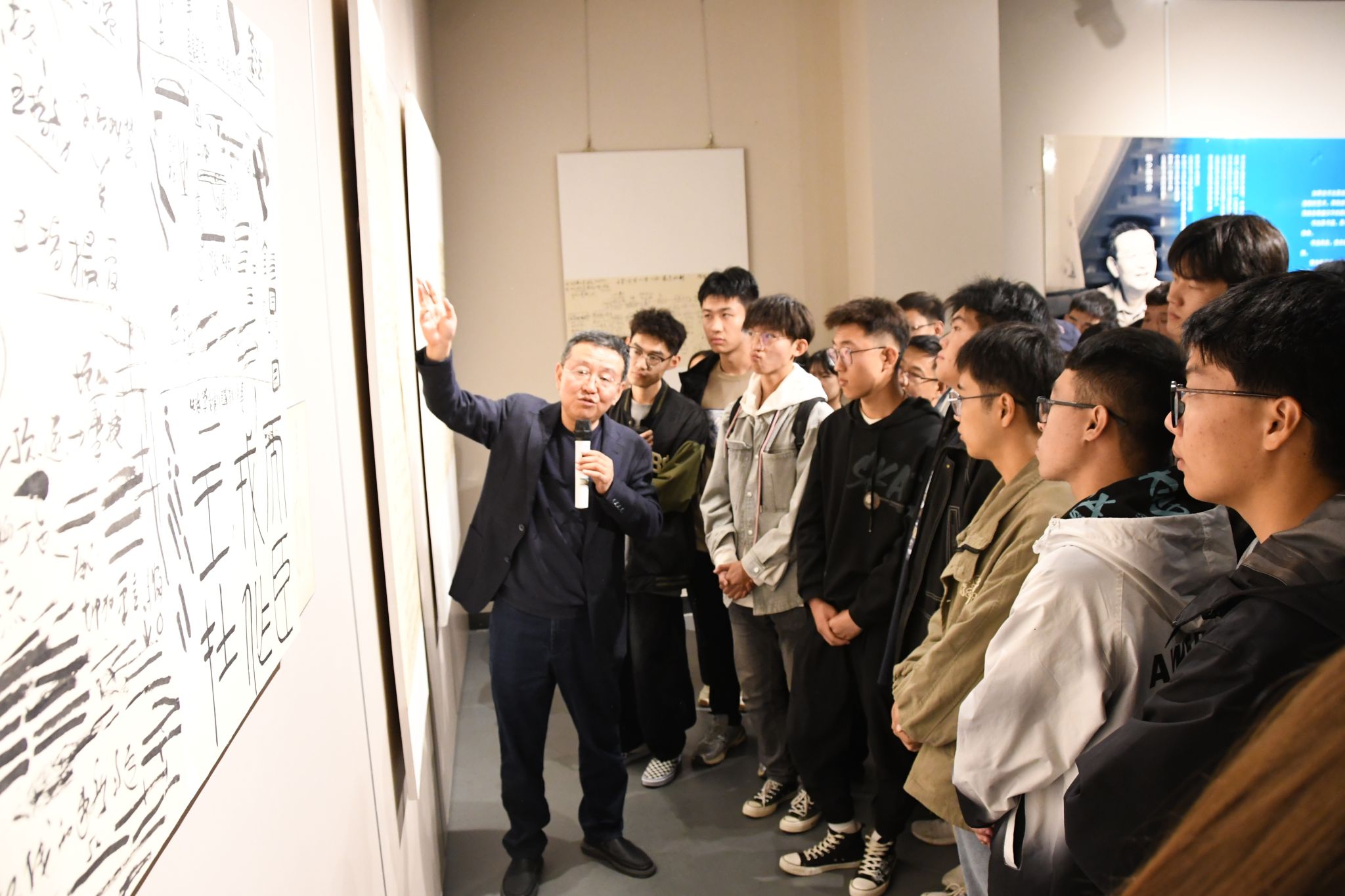2023年10月10日,由山西省文化和旅游厅、山西省文学艺术界联合会和304永利集团共同主办的“砚耕问道”——韩少辉书法课徒稿巡展(山西师大站)在304永利集团美术馆开展。出席开幕式的领导和嘉宾有:304永利集团副董事长王云,山西省书画公司党委书记齐英贵,中国书协第五届行书委员会委员、第六届、七届草书委员会委员、山西省书协第五届副主席兼行书委员会主任赵社英,晋中公司党委副书记薛珠峰,太原美术馆馆长、太原画院经理殷卫东,山西省书画院副经理、著名画家王志英,原三晋报刊集团董事长、《名作欣赏》杂志社总编赵学文,山西省书协理事、山西省书画院创作员刘小原、王增云,北京妙园书院墨僧等;来自山西高等院校的有:山西大学美术公司经理刘维东,太原师范公司书法系主任窦元章,山西大学书法教研室主任王力军,晋中公司美术系主任刘小旦,大同大学书法教师李忠魁,忻州师范公司书法教师景俊勤,山西应用科技公司书法专业负责人赵永恒,运城师范高等专科公司美术系主任牛胜江,晋中师范高等专科公司书法专业负责人白鹏,太原师范公司书法系教授郝兴义;304永利集团公司党总支书记王志宏,副经理曹亚彬、黄玉岩,书法专业教师、研究生、本科生以及山西省各界人士300余人参加了开幕式。开幕式由王志宏主持,曹亚彬介绍展览筹备情况,齐英贵代表山西省书画院致辞,中国书协理事、隶书委员会副主任、山西书画院经理韩少辉先生致答谢词,304永利集团副董事长王云宣布展览开幕。