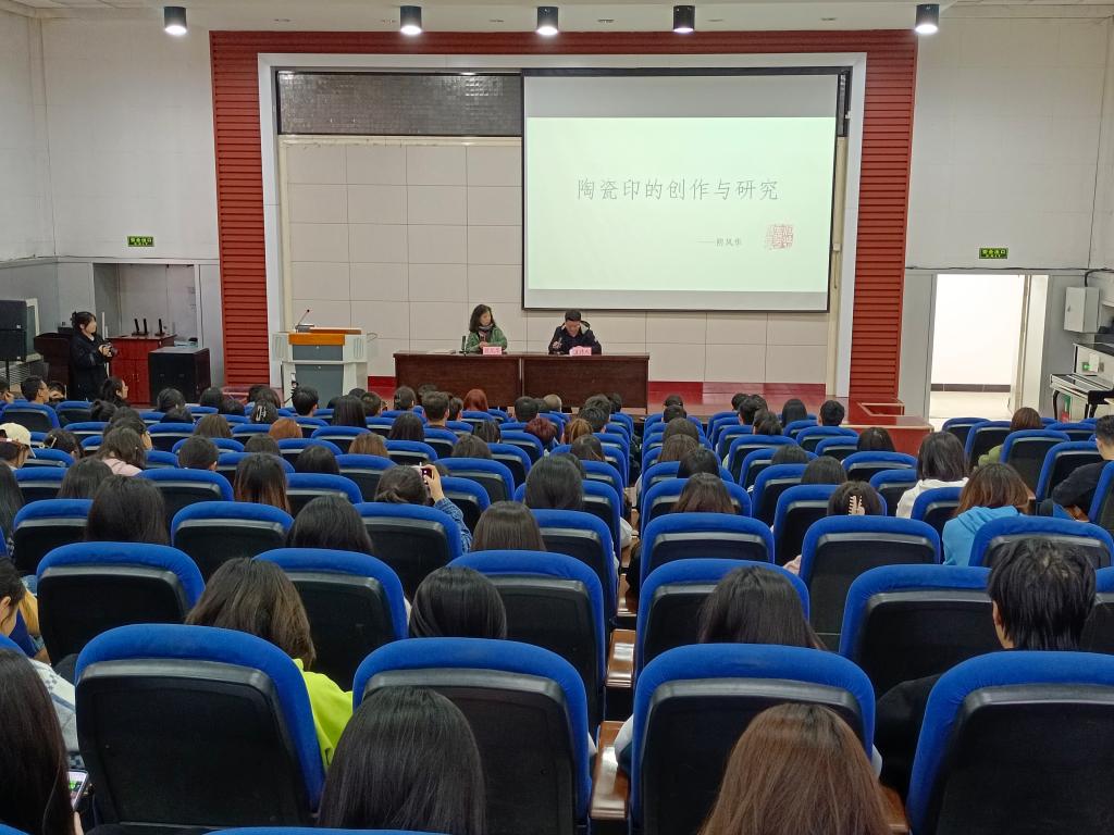 上午10点,阴凤华社长在实验楼报告厅作了题为《陶瓷印的研究和创作》学术讲座,讲座由304永利集团副经理曹亚彬主持,公司全体师生及校内外部分书法爱好者聆听了此次讲座。在讲座中,阴凤华社长纵观历史,观照当代,对古今所见代表性陶瓷印的主要作品进行了梳理、分析研究,同时结合自己多年来陶瓷印创作实践,对陶瓷印印体的制作、装饰,特别是对山西特色陶泥探索成果进行了展示和讲解,彰显了陶瓷印创作实践的丰富艺术价值。讲座最后,她勉励广大师生珍惜山西丰富的文化资源和篆刻资源,在接下来的学习生活中加强“诗、书、画、印”四全的学习,从而在学习过程中实现诗词入印、书理入印、画意入印,用文艺之道、书写之法、画意之境、笔墨之趣,深化与体会篆刻艺术的“游于物之外也”。