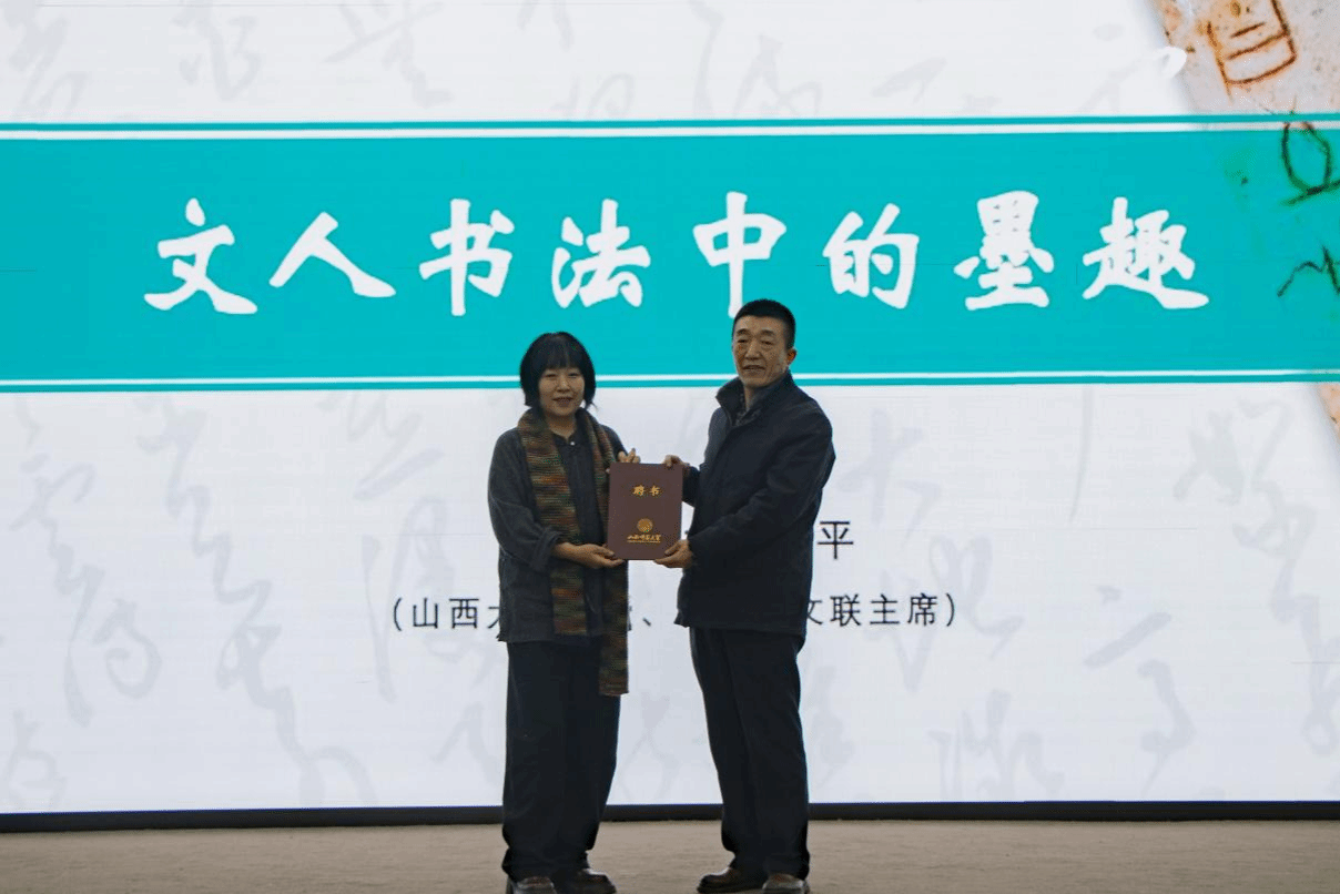 葛水平教授以《文人书法中的墨趣》为题,旁征博引,通过对莫言、贾平凹、冯骥才等文学大家书法作品的艺术特点进行分析,深入浅出地阐述了文人书法的内涵与墨趣在其中的核心地位。她指出,墨趣不仅仅是墨色在纸张上的呈现,更是文人墨客情感、心境与审美意趣的表达载体。希望大家在日常进行书法创作时,将墨趣与书法技巧相结合,丰富书法意蕴。